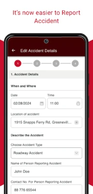 ● Safety Reporting - a Driver can report a breakdown or an accident providing full details including.