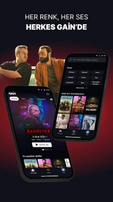 As Turkey's leading entertainment platform, GAIN delivers engaging content tailored to your unique interests and preferences. With a personalized streaming schedule, you can easily access content you like and choose to watch series and movies with options for Turkish dubbing or subtitles.