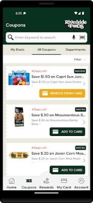 The Riverside Foods Market app is the easiest way for our loyal shoppers to receive savings every time they come into the store! It's as simple 1, 2, 3: