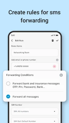 2. Customizable Rules: Set up specific criteria and filters based on sender, keywords, or other conditions to determine which messages get forwarded. Manage your text messages efficiently with advanced SMS rules and filters.