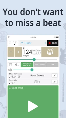 • Our metronome never lags beats, ensuring accurate timing: a real metronome shouldn't lag